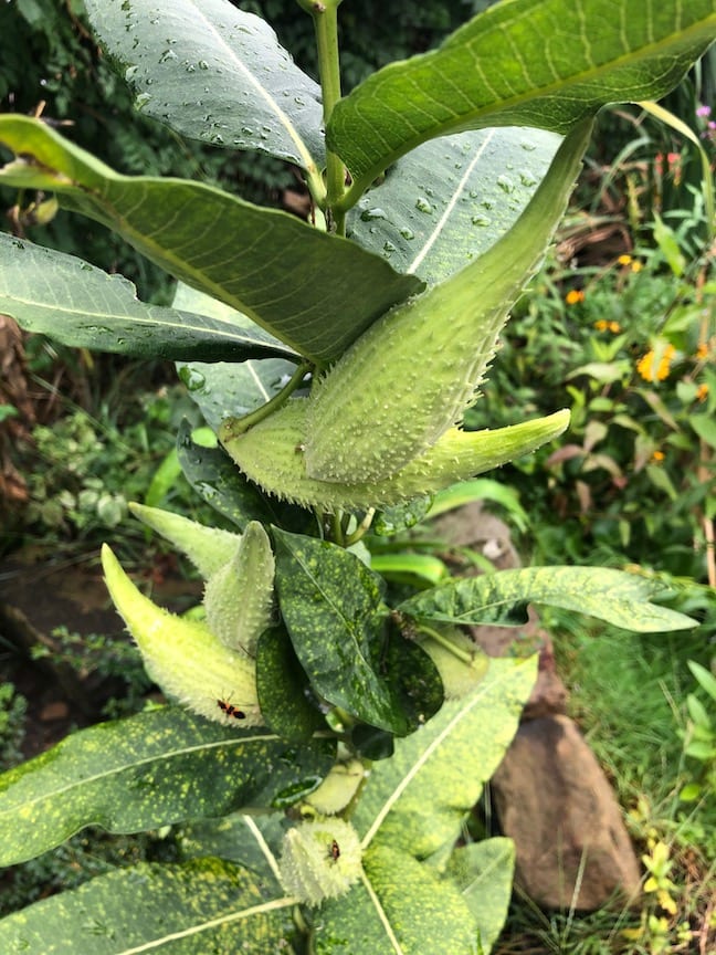 There are many different types of milkweed growing everywhere in what he calls his woodland border, along with hibiscus, holly, two types of sweetshrub, dogwoods, mountain laurel, crape myrtle, coneflower, columbine, ferns and many other plants.