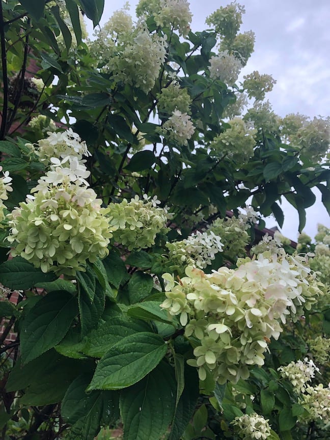 There are a few huge hydrangeas filled with pure white flowers on the side of the house he found for three dollars. They were transplanted four times until Seeker finally found the perfect place for them.